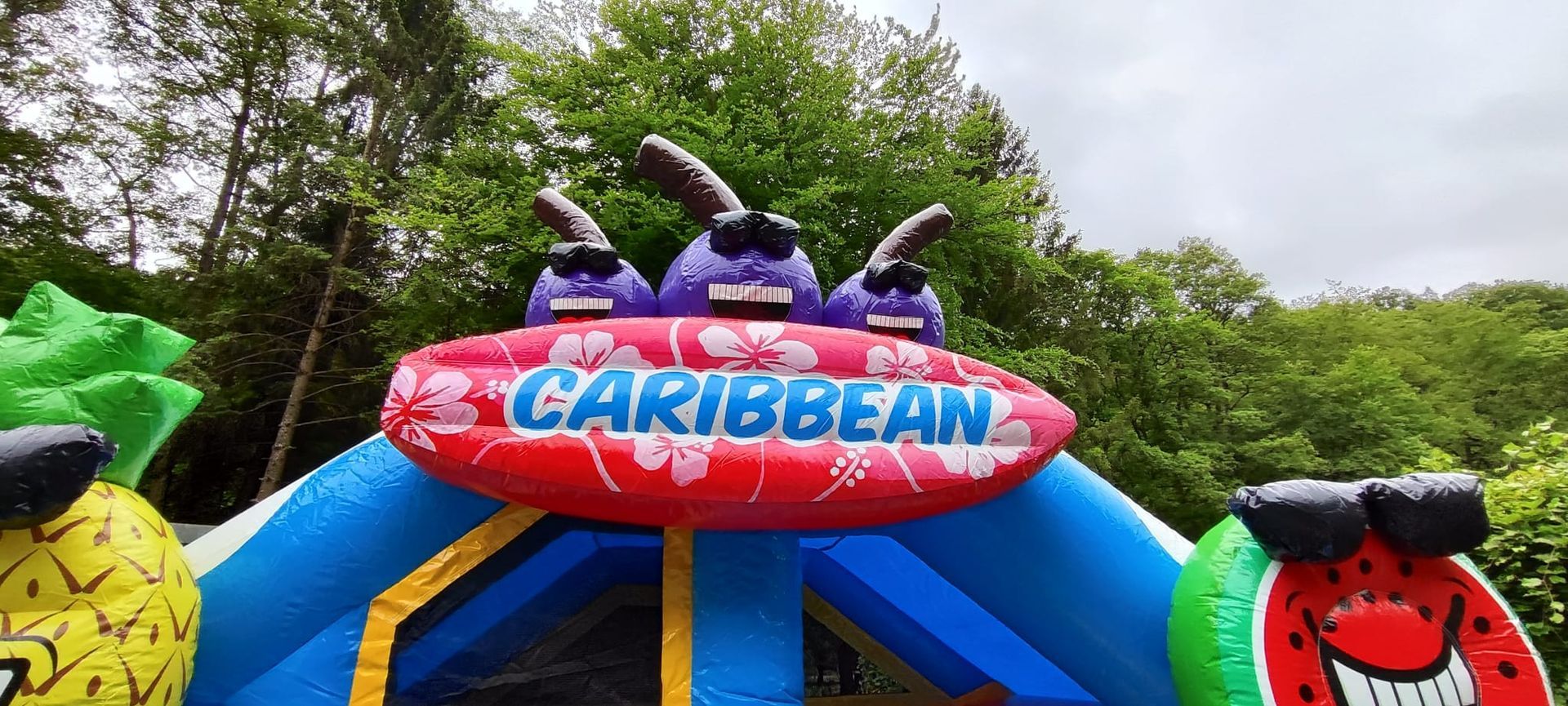 Unsere (Typ 3)Slide Combo Karibik Hüpfburg mit Rutsche.